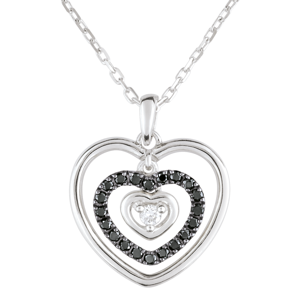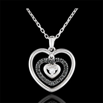 Necklace Printed Heart White Gold - Black Diamonds