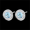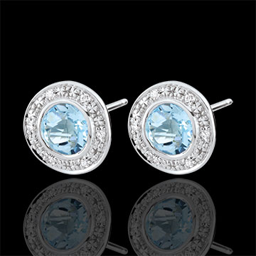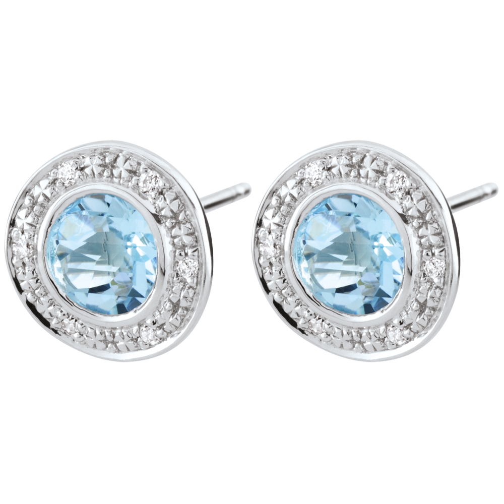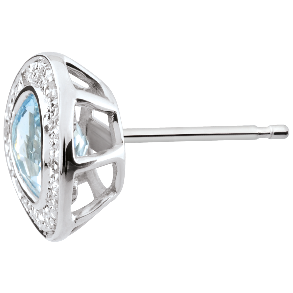 The purity of the blue topaz is enhanced by a surrounding of gold and diamonds