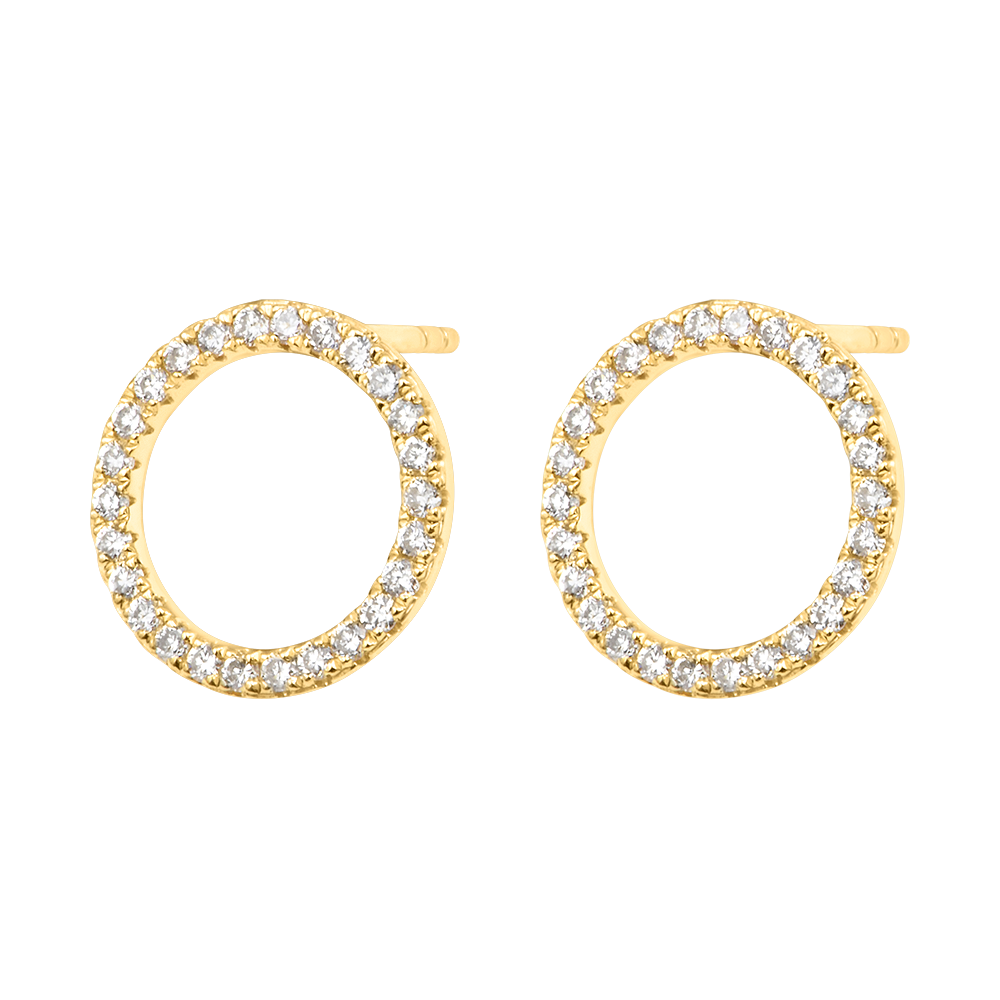A perfect circle adorned with radiant diamonds for effortless brilliance.Contemporary yet timeless studs, designed to shine day or night.