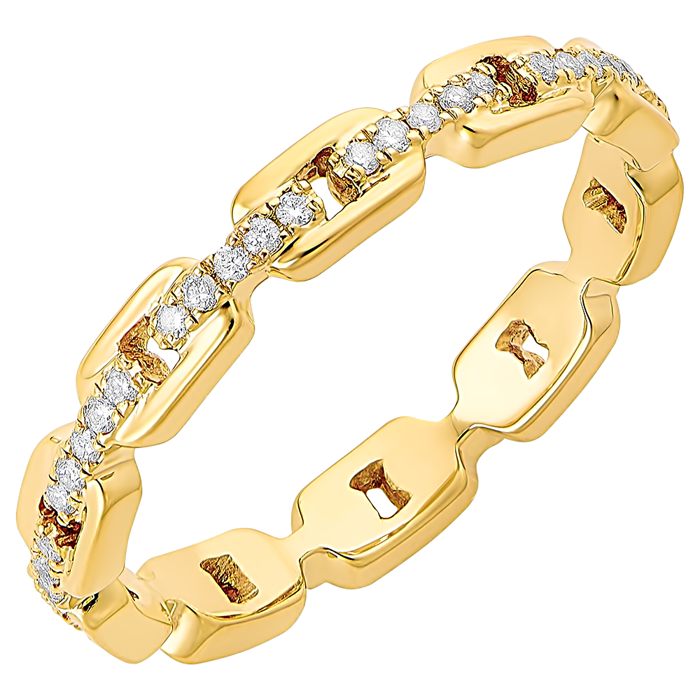 Generous yellow gold Cuban links set with diamonds constrast for an updated classic ring