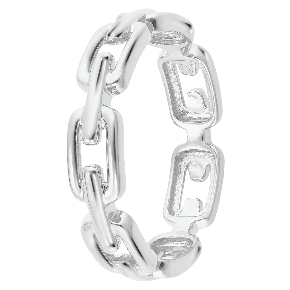 Generous white gold Cuban links for an updated classic ring.