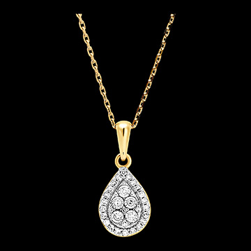 This delicate pendant in 9 carat white and yellow gold features a pavé of 31 natural diamonds totaling 0.079 carats. Its pear shape is enhanced by a diamond halo that subtly captures the light. A fine and elegant jewel embodying timeless aesthetics, combining the purity of classic lines with a refined modern design. Part of the Origin Collection, celebrating essential beauty and pure forms. An ideal pendant to accompany precious moments with understated sophistication, not engravable.… See more Technical information