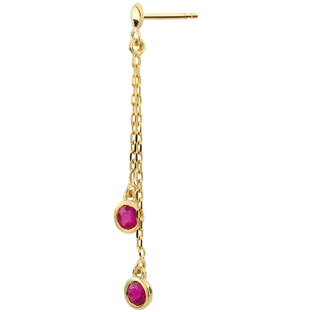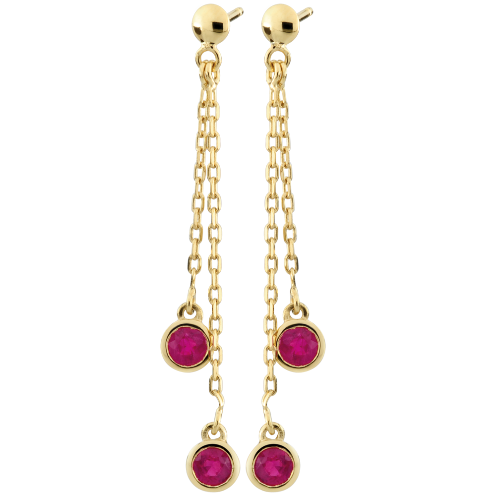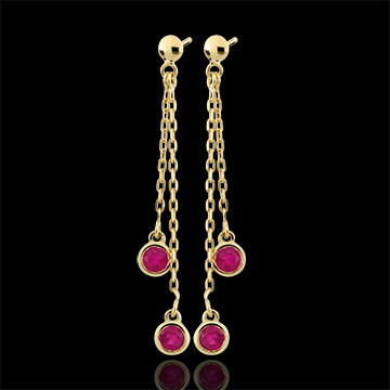 A pair of rubies is radiantly and delicately balanced.