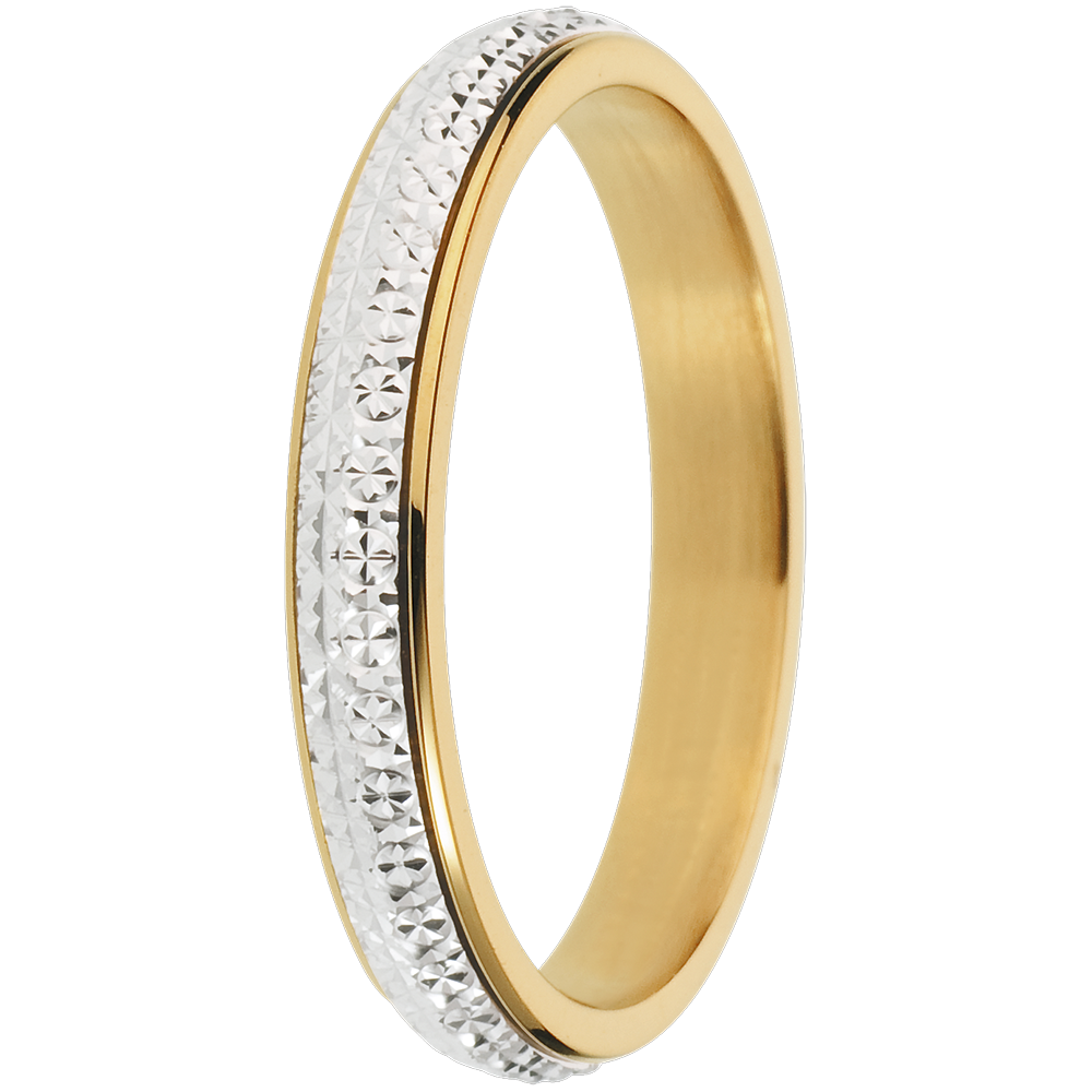 A finely worked white gold ring is crowned with yellow gold.