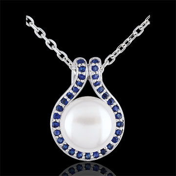 ABONDANCE NO. 25Pendant - White gold 9 carats - Pearl, Blue Sapphire ID : 2298