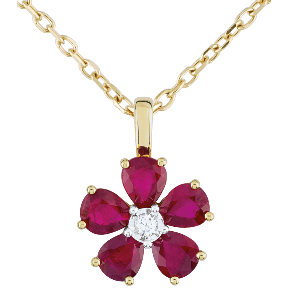 OISEAU DE PARADIS NO. 12Pendant Flowers - Yellow gold 9 carats - Ruby ID : 2466 5 (7)