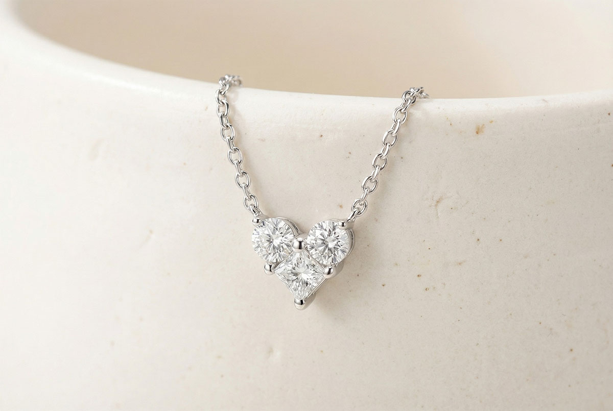 A heart set with 3 diamonds delicately placed on a white gold necklace. This icon of jewelry is revisited by Edenly with poetry for a declaration of love of the most intense. Oh, lovely! With gold chain 750/- . 3 diamonds : 0.29 carat - White gold (18K Gold = 750/-): 1.4 g. Cluster of natural diamonds : 3 - More dimensions