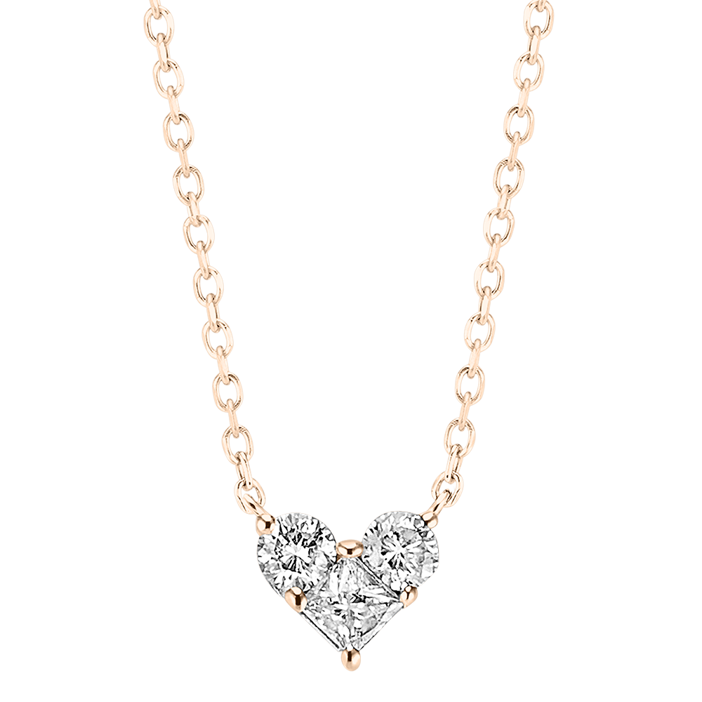 A mini heart set with 3 diamonds delicately placed on a rose gold necklace. This icon of jewelry is revisited by Edenly with poetry for a declaration of love of the most intense. Oh, mini lovely! With gold chain 750/- . 3 diamonds : 0.15 carat - Pink gold (18K Gold = 750/-): 1.3 g. Cluster of natural diamonds : 3 - More dimensions