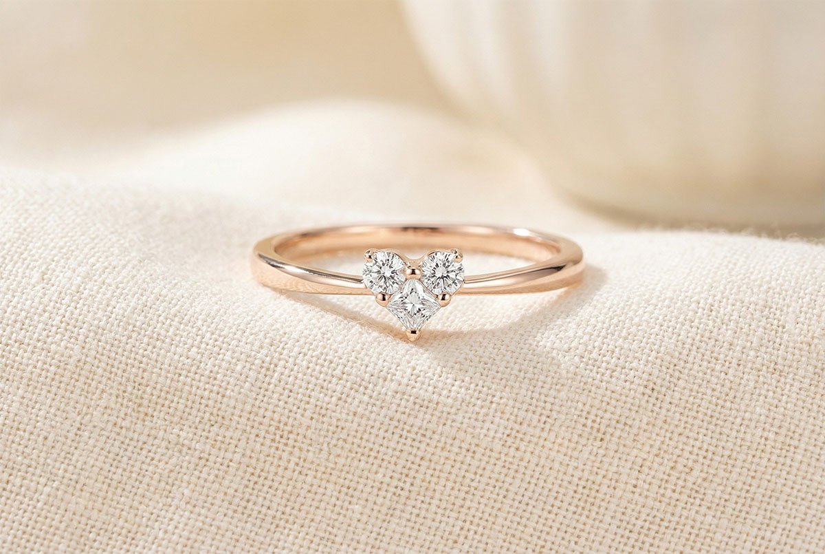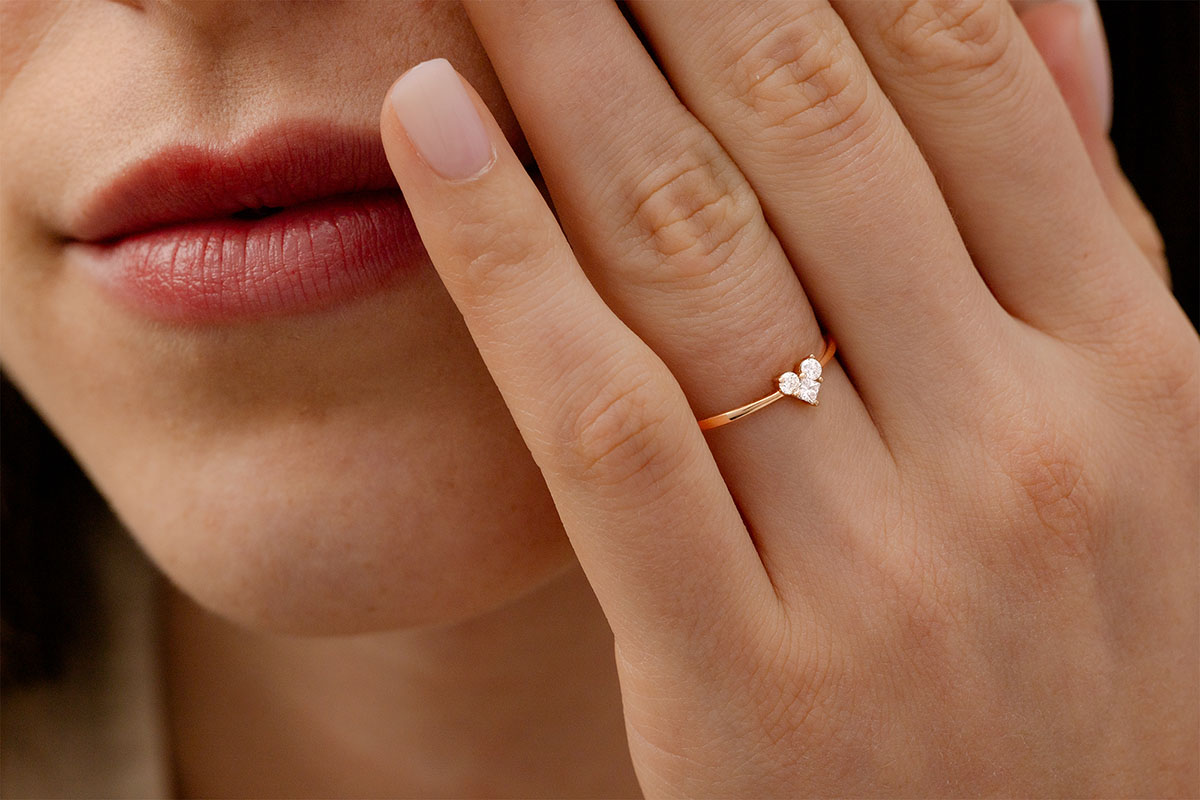 A mini heart set with 3 diamonds delicately placed on a rose gold ring. This icon of jewelry is revisited by Edenly with poetry for a declaration of love of the most intense. Oh, mini lovely! 3 diamonds : 0.14 carat - Pink gold (18K Gold = 750/-): 1.1 g. Cluster of natural diamonds : 3 - More dimensions
