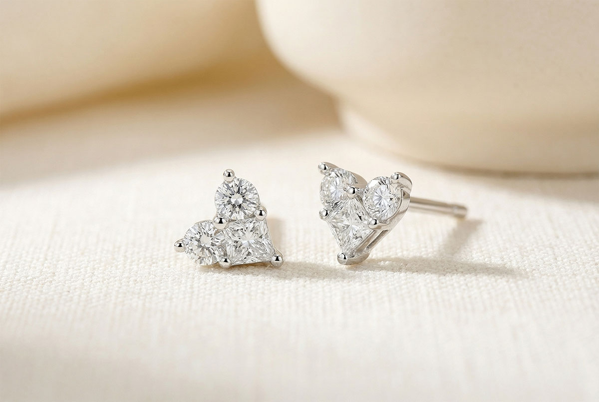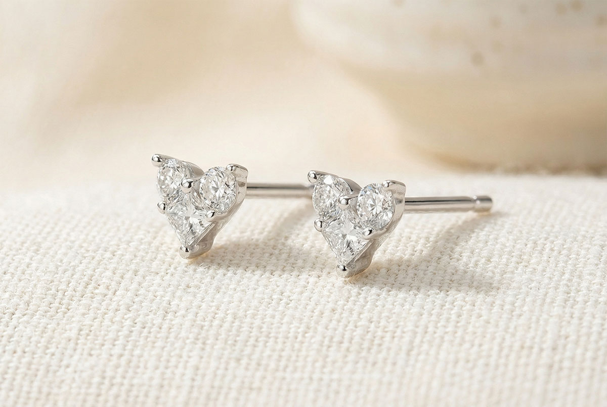PRéCIEUX SECRET NO. 17Stud Earrings Heart - White gold 9 carats - Cluster of natural diamonds ID : 5386