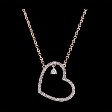 Precious Secret Necklace - Leaning Heart - pink gold 18 carats and diamonds