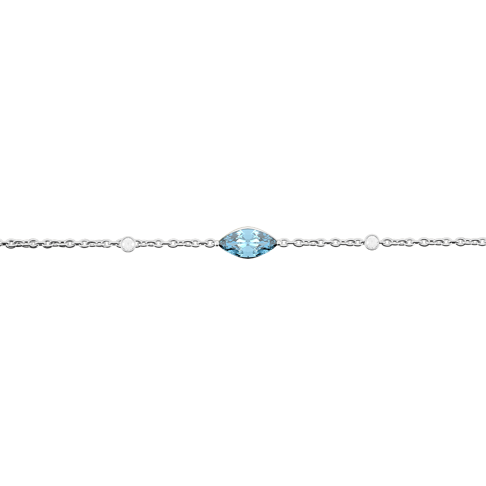 The precious pupil is symbolized by a marquise cut blue topaz enthroned in the center of this delicate chain of yellow gold. It is surrounded by two sublime diamonds that are like tears that have been forever frozen.