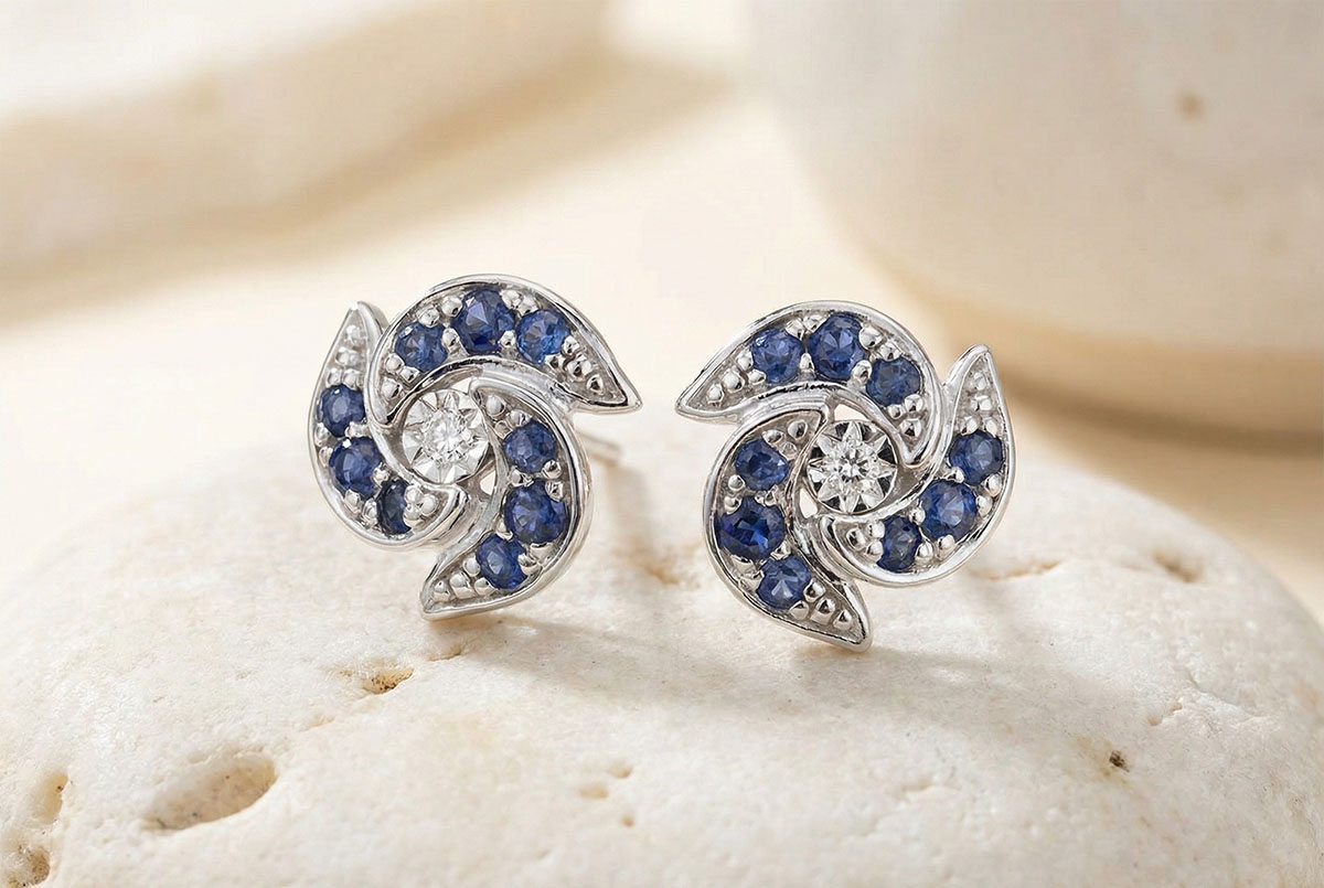 OISEAU DE PARADIS NO. 15Stud Earrings - White gold 9 carats - Blue Sapphire ID : 2358