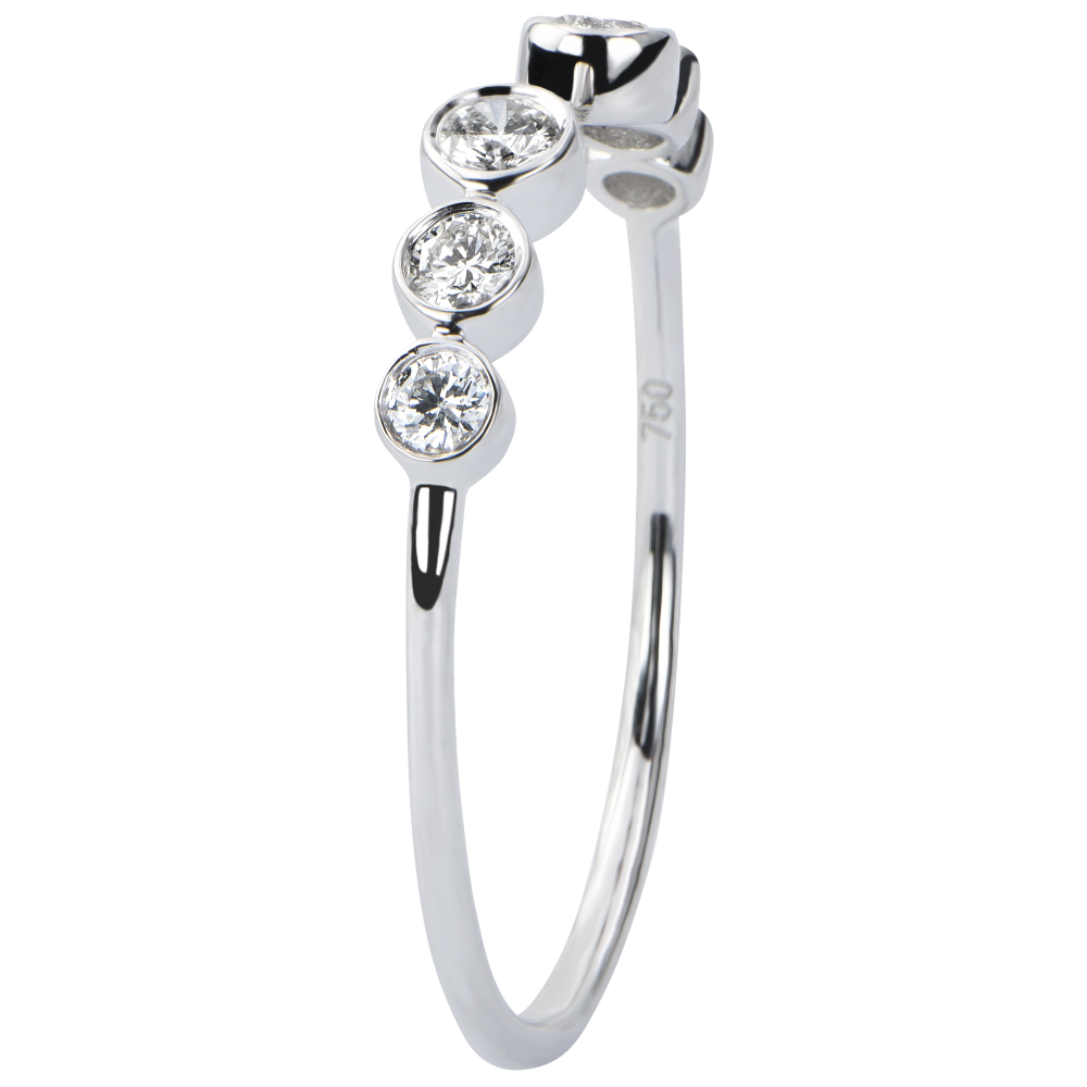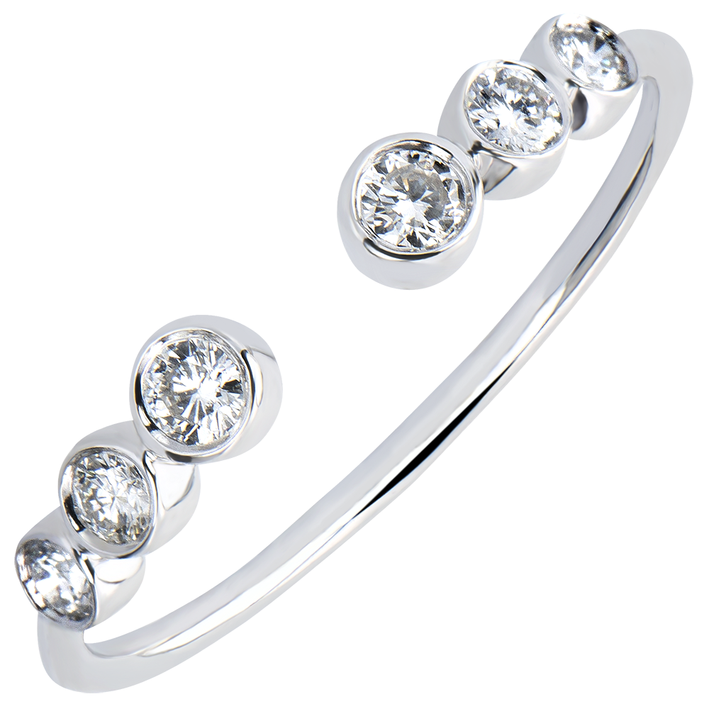 A young, original jewelry piece, composed by 6 diamonds on a closed setting, talking to each other and giving life to an echo. A delicate and feminine ring.