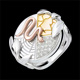 A gold and diamond ring symbolizes the spirit of the Earth. As a slice of life, the base of the ring enclosed by foliage shows patterns of nature: wood grain, crystals of ice, placid water and cracking of the desert. The serpent brings life, placed on the embodiment of nature and Earth 21 diamonds : 0.08 carat - Three golds (9K Gold = 375/-): 6.3 g. More dimensions