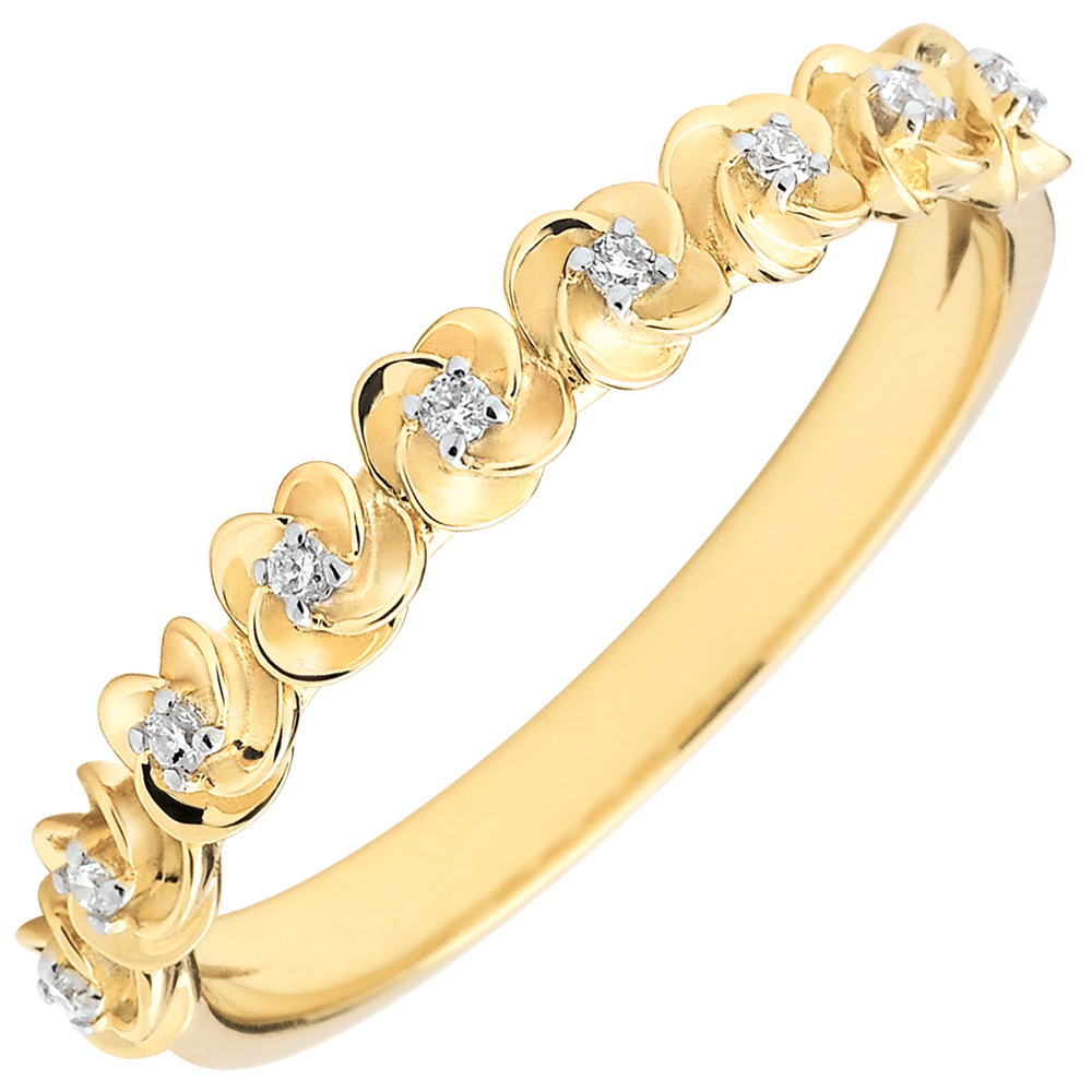 Ring Eclosion - Roses Crown - Small model - yellow gold and diamonds - 9 carats