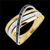 Ring Saturn Quadri - yellow gold - black and white diamonds - 9 carat