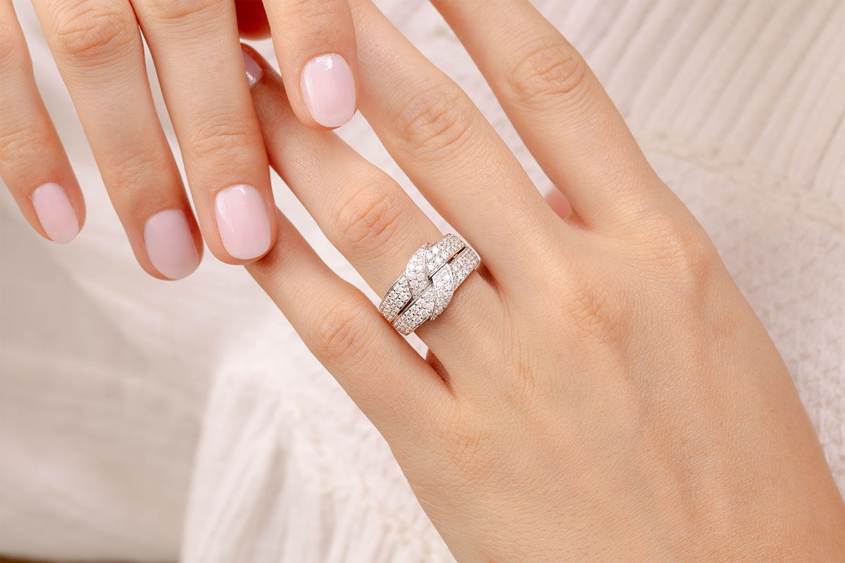 A cluster is a composition of small diamonds brought together to create the effect of a larger stone, with multiplied sparkle and an excellent value-for-money ratio.