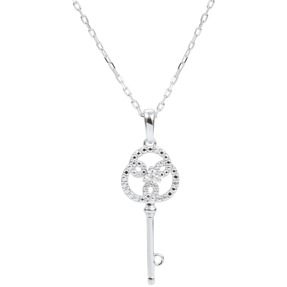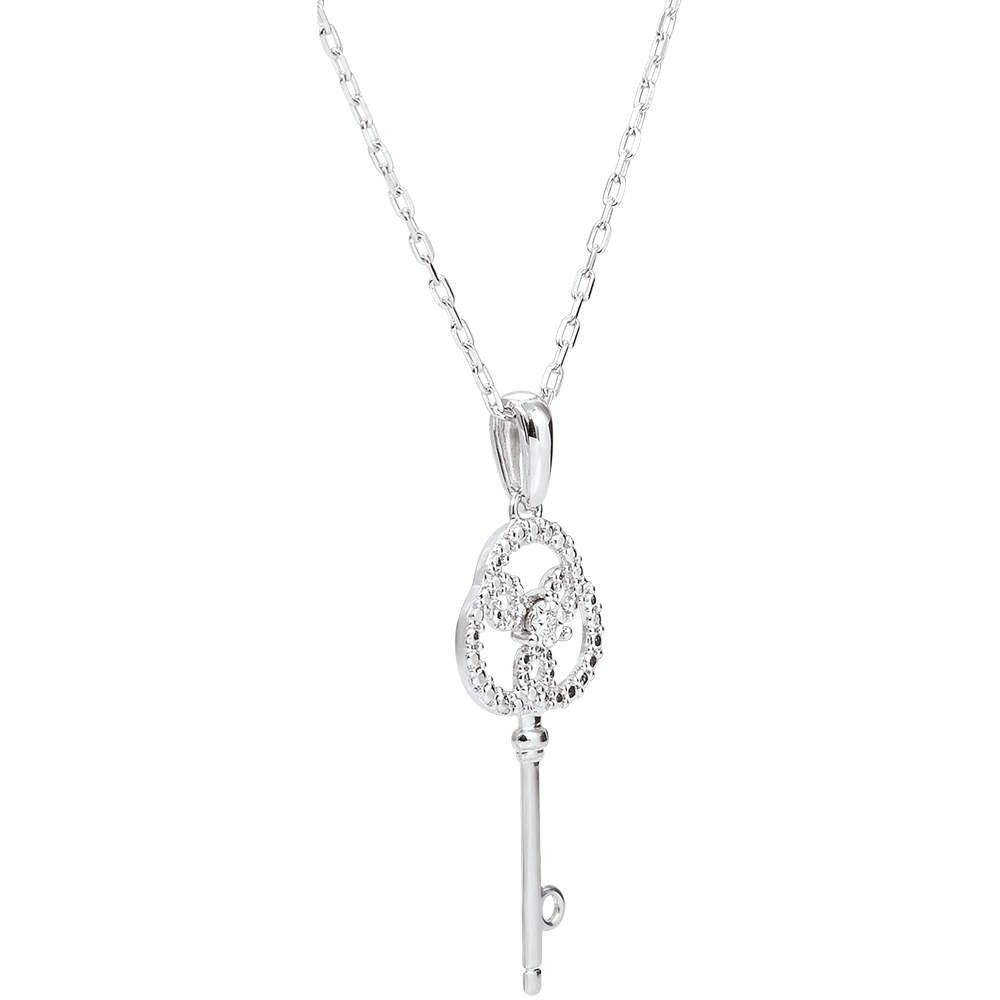 Rose and White Gold Diamond Eternity Key Pendant with a white gold chain
