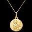 Measuring 16 mm with a sandblasted gold relief finish, this piece combines delicacy and spirituality. It features customizable engraving on the back and comes in an elegant case.