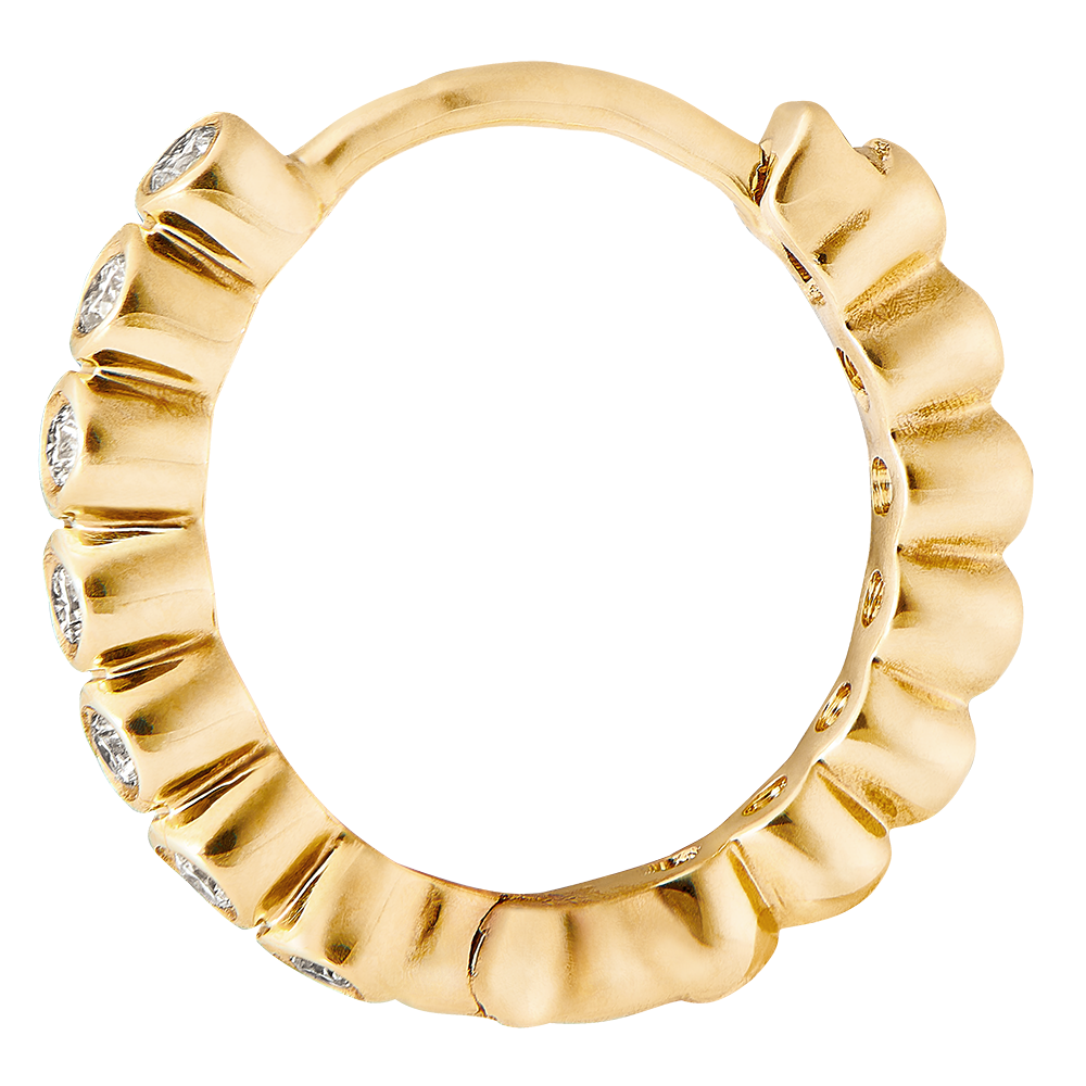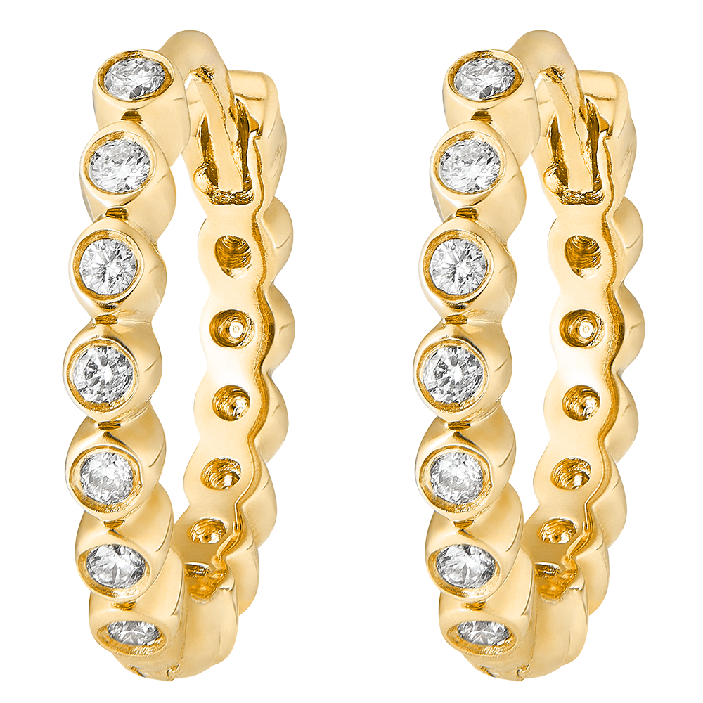 A circle of yellow gold pearls set with diamonds. A pair of femine, classic yet original hoops. 14 diamonds : 0.07 carat. 14 diamonds : 0.07 carat - Yellow gold (9K Gold = 375/-): 1.1 g. More dimensions