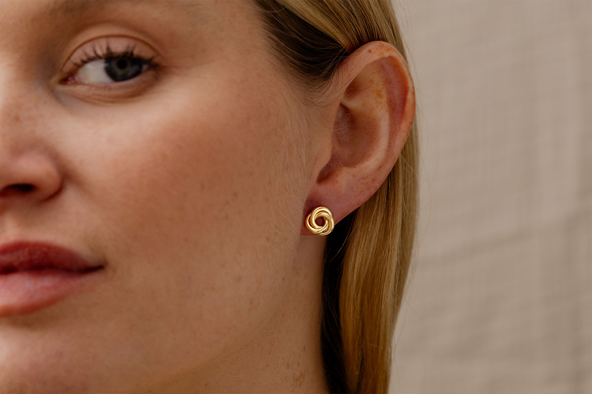 The balanced combination of yellow gold hoops for a pair of timeless earrings.