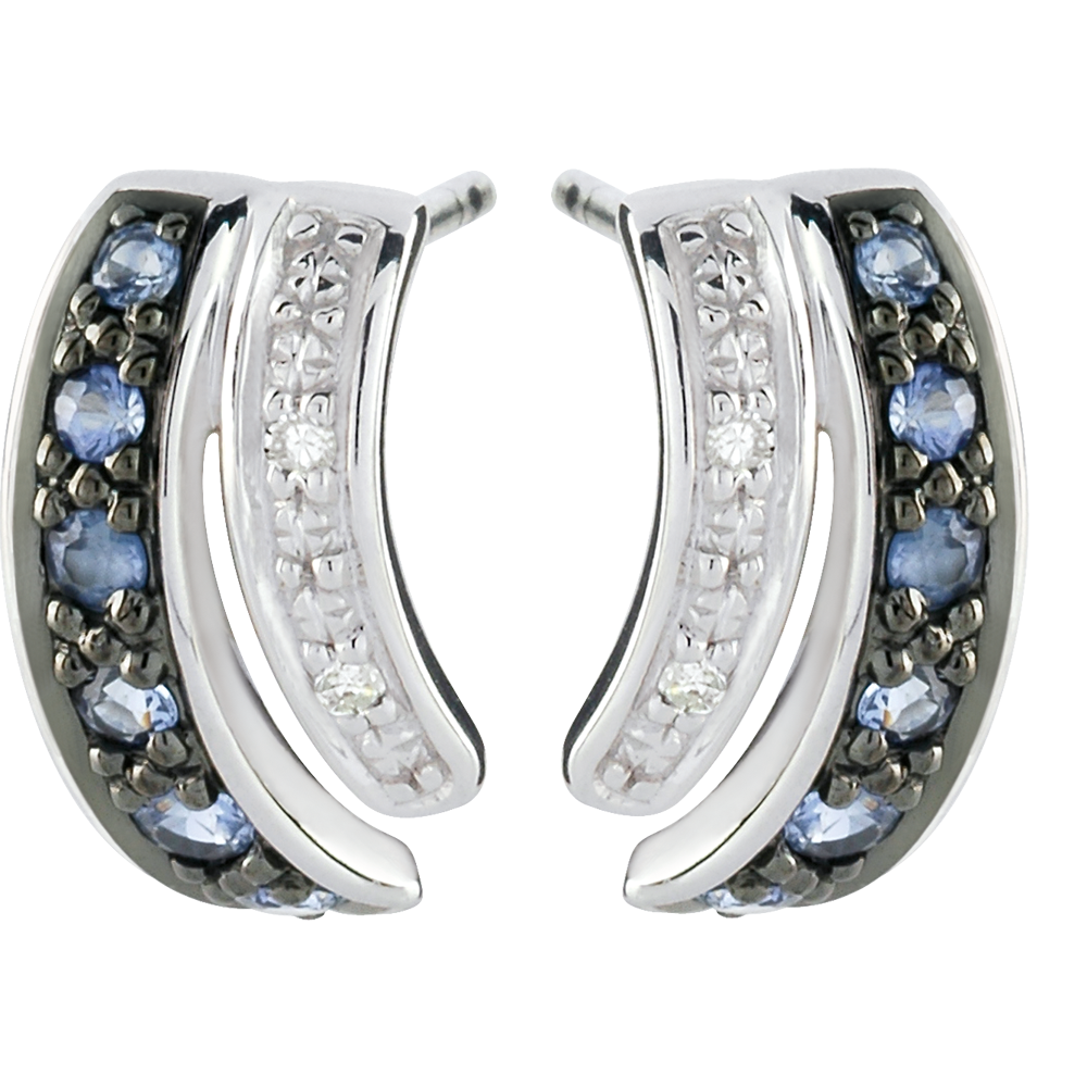 The Savina earrings feature 12 Very Good quality blue sapphires and 4 diamonds with minimum clarity H, I, ensuring remarkable sparkle and color.