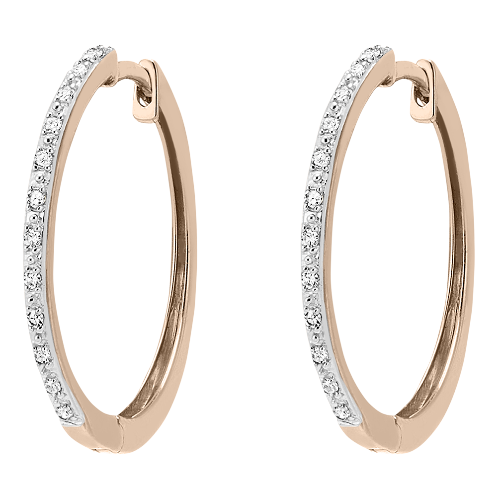 A pair of semi-mounted rose gold hoop earrings for a touch of sparkle and modernity. 18mm diameter ring