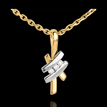 Pendant Precious Nest - Sinogram trilogy - white and yellow gold - 18 carats