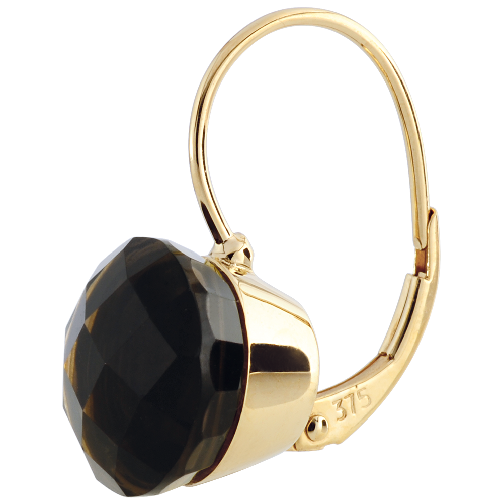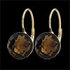 Two multi-faceted smoky quartz balls on a pendant mount in yellow gold. Sleeper model