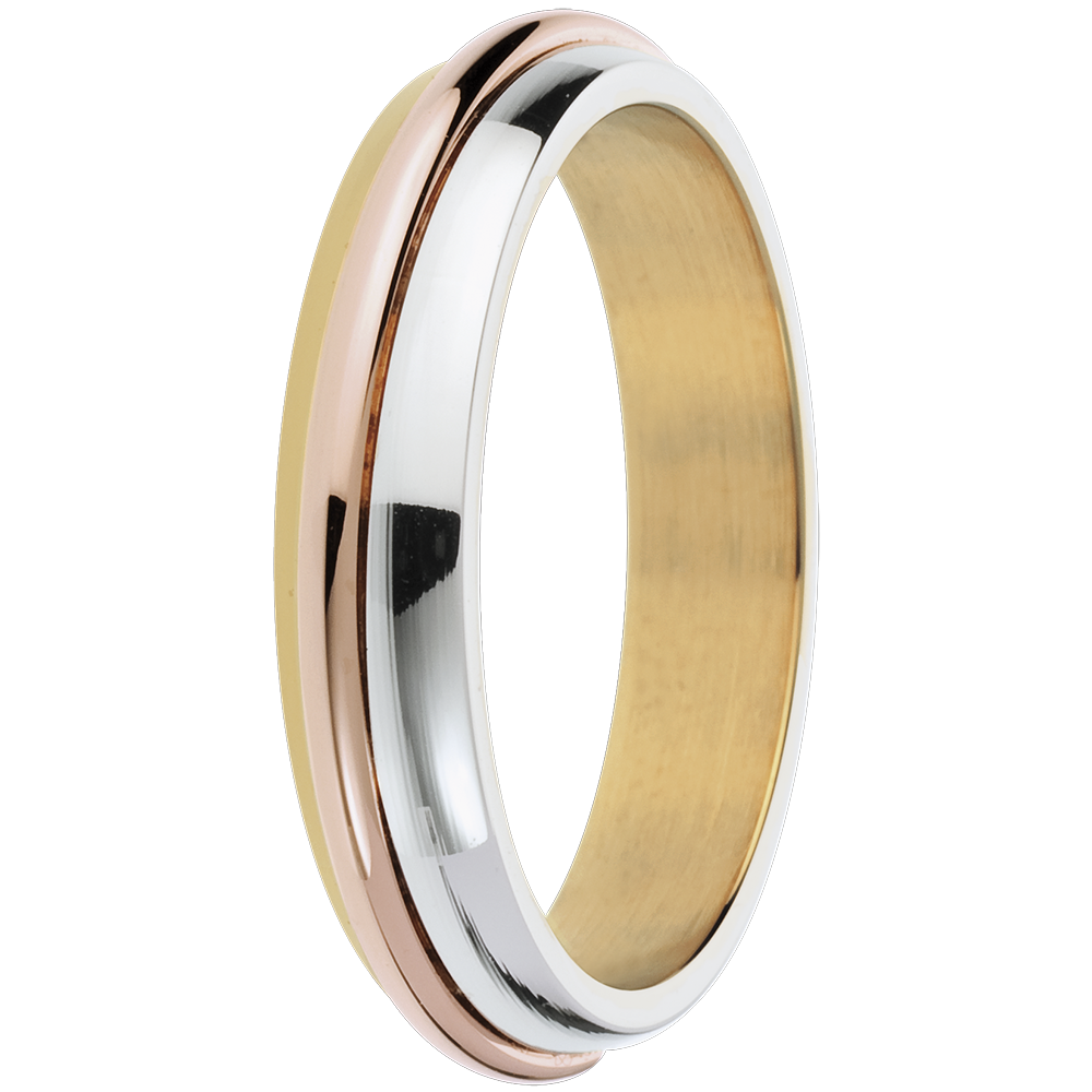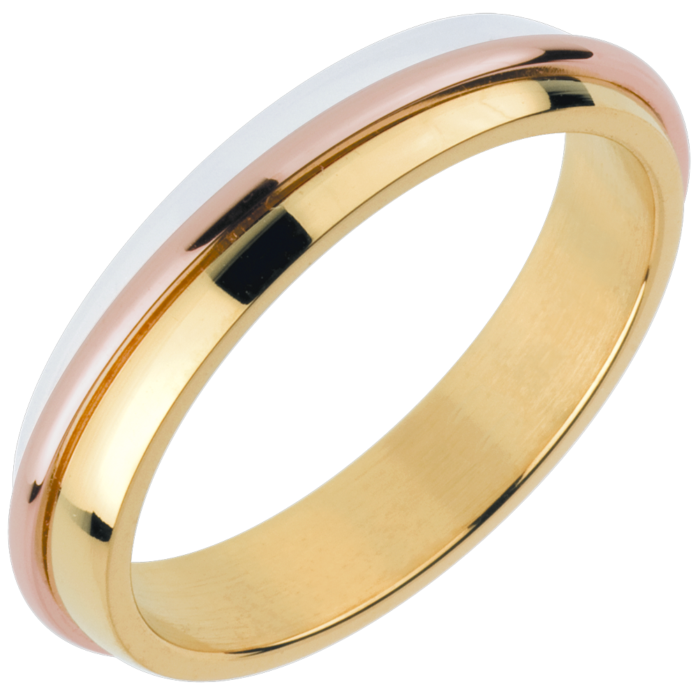 A trilogy of rings in three golds shine like the children of the sun.
