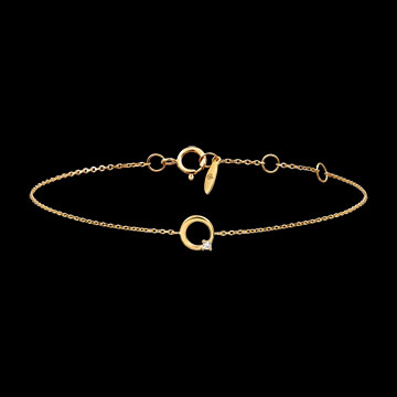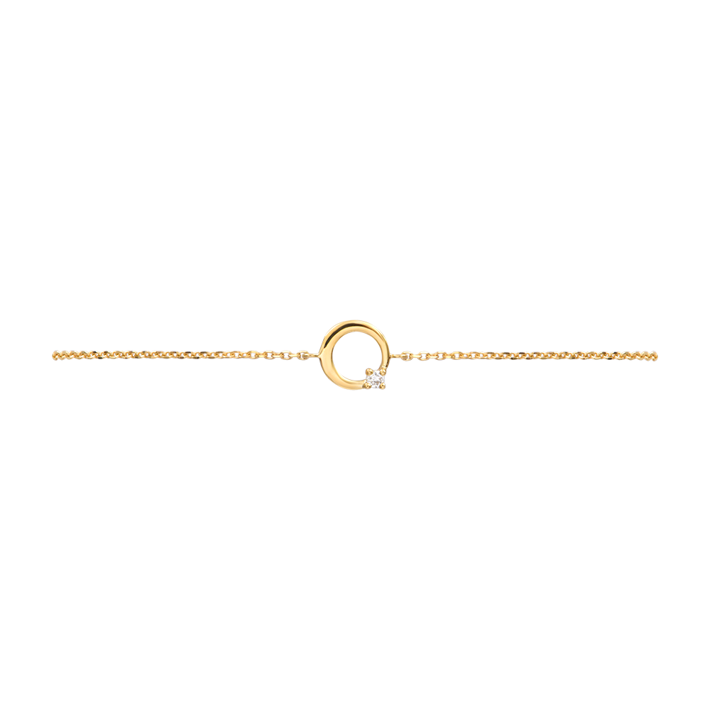 A yellow gold circle adorned with a single sparkling lab-grown diamond hangs delicately from a fine chain.A minimalist brilliance, subtle and refined, worn directly against the skin.