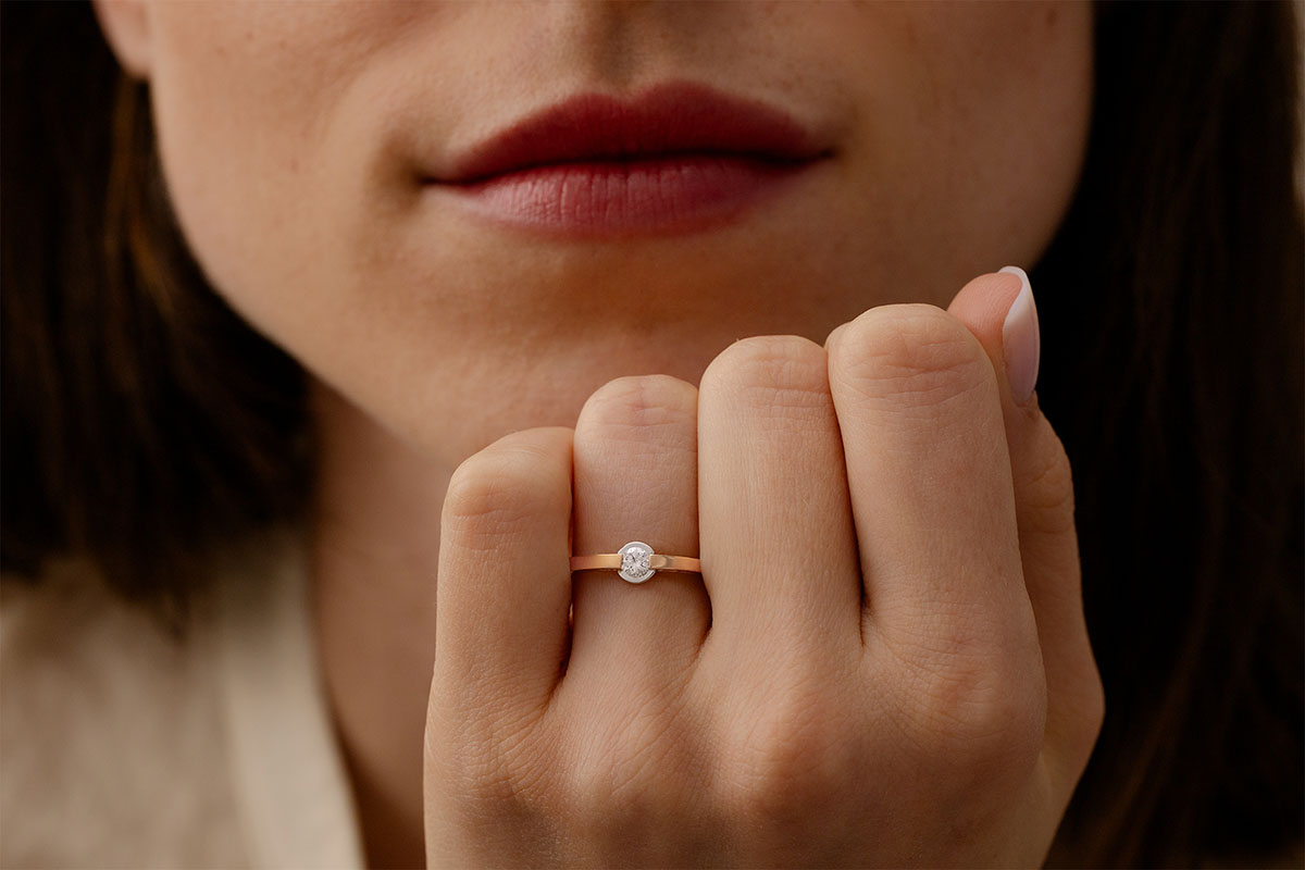 A white gold and rose gold alloy for a solitaire enclosed in a frame
