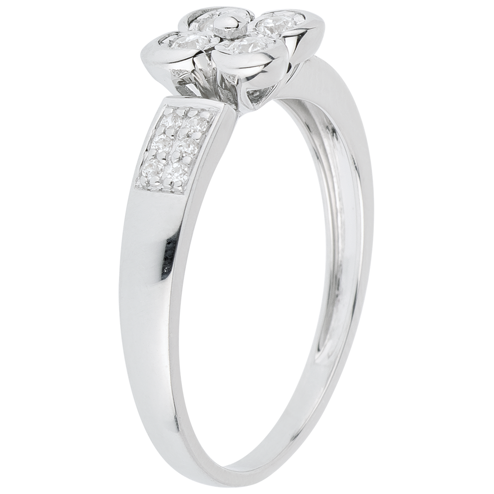 4 diamonds are the heart of a precious clover on a paved frame with brilliant-cut diamonds