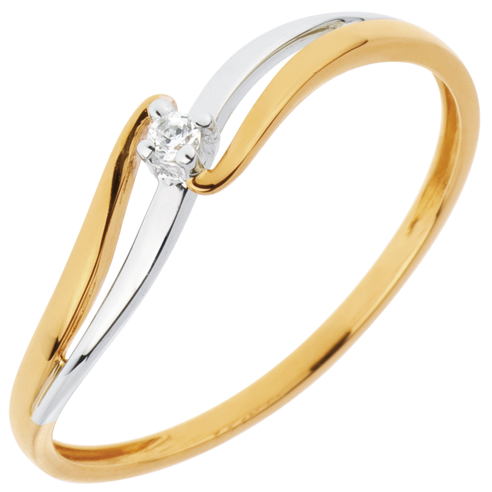 Solitaire Ring Precious Nest - Elly - white gold and yellow gold - 18 carats