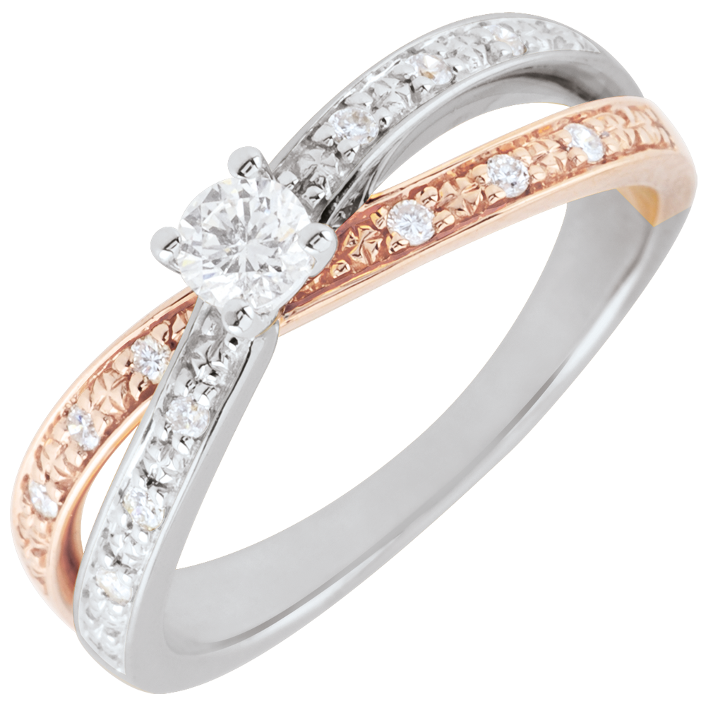 Solitaire Ring Saturn Duo double diamond - rose gold and white gold - 0.15 carat - 18 carat
