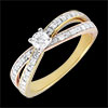 Solitaire Ring Saturn Duo double diamond - three golds - 0.15 carat