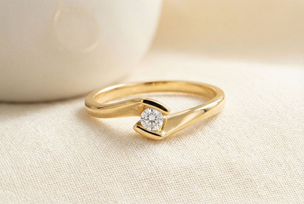 Solitaire Ring Precious Nest - Summer Night - yellow gold - 0.12 diamons - 18 carats