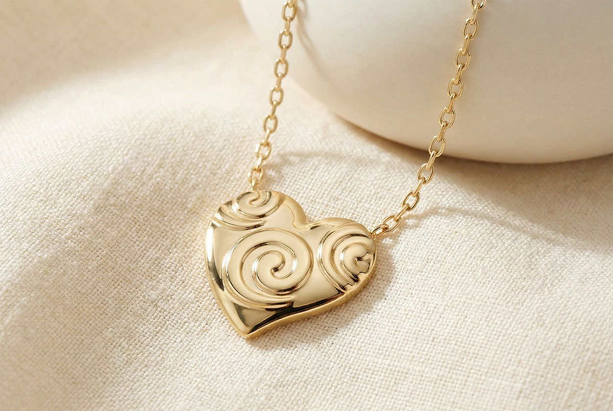 A heart imprinted with spirals for an original necklace in relief.