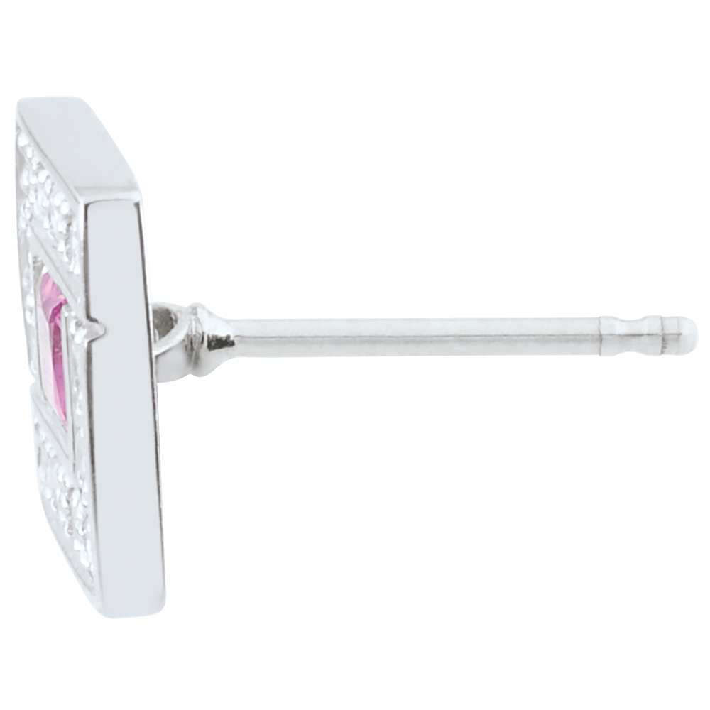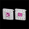 They feature two princess-cut rose sapphires totaling 0.4 carats, surrounded by 24 diamonds weighing 0.14 carats.