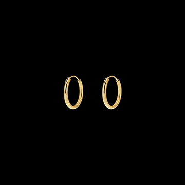 A pair of hoop earrings with a diameter of 10mm. 1.5mm thick hollow gold wire.