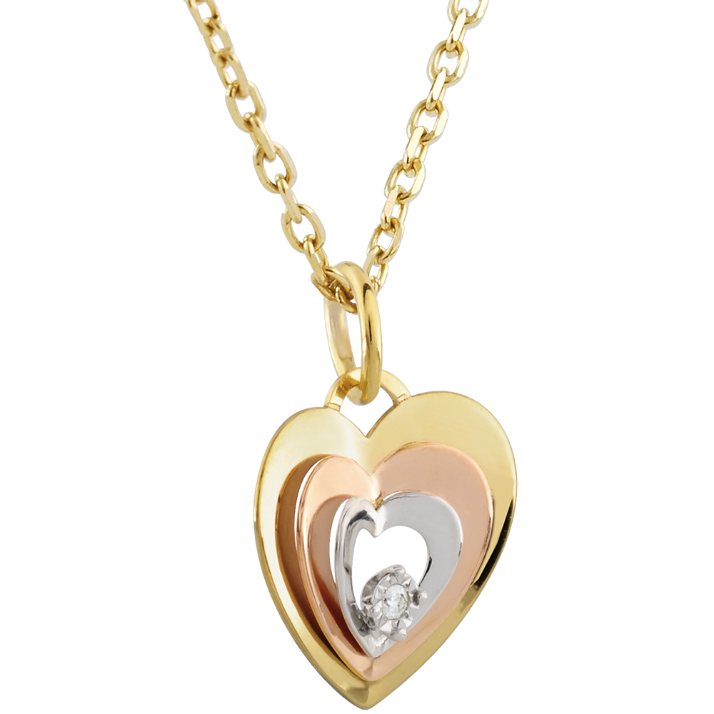 • Unique love symbol combining three gold tones in a heart pendant