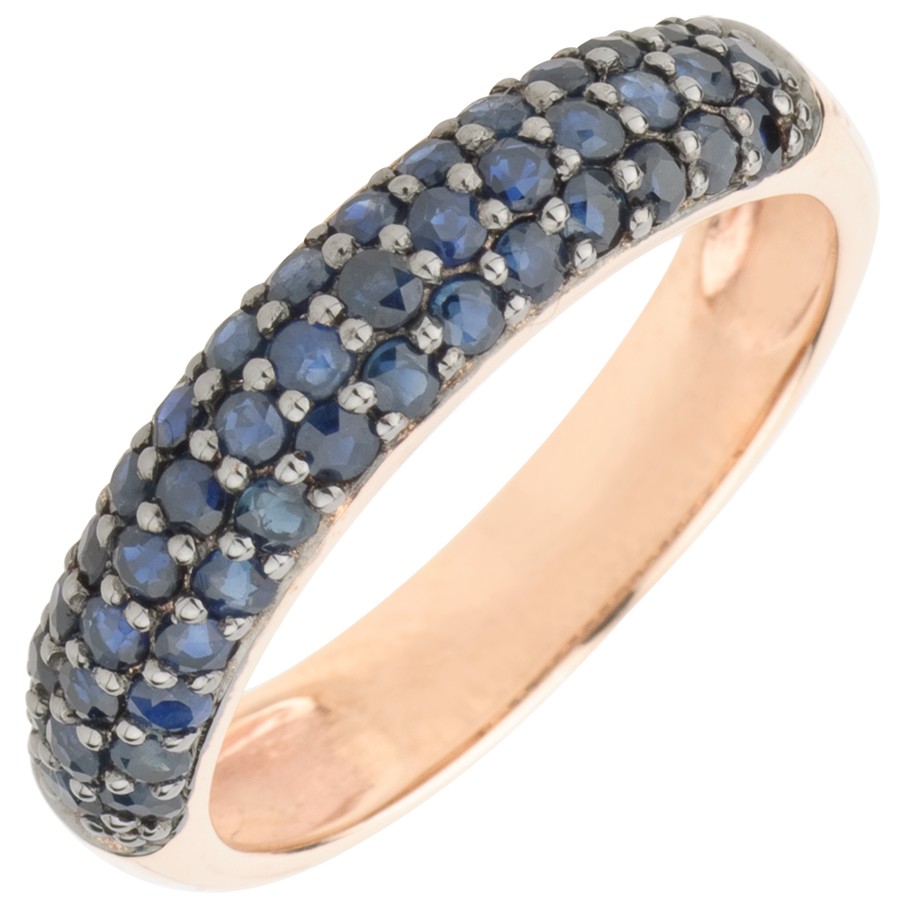 Ring Bird of Paradise - three lines - rose gold and blue sapphire