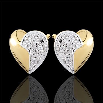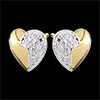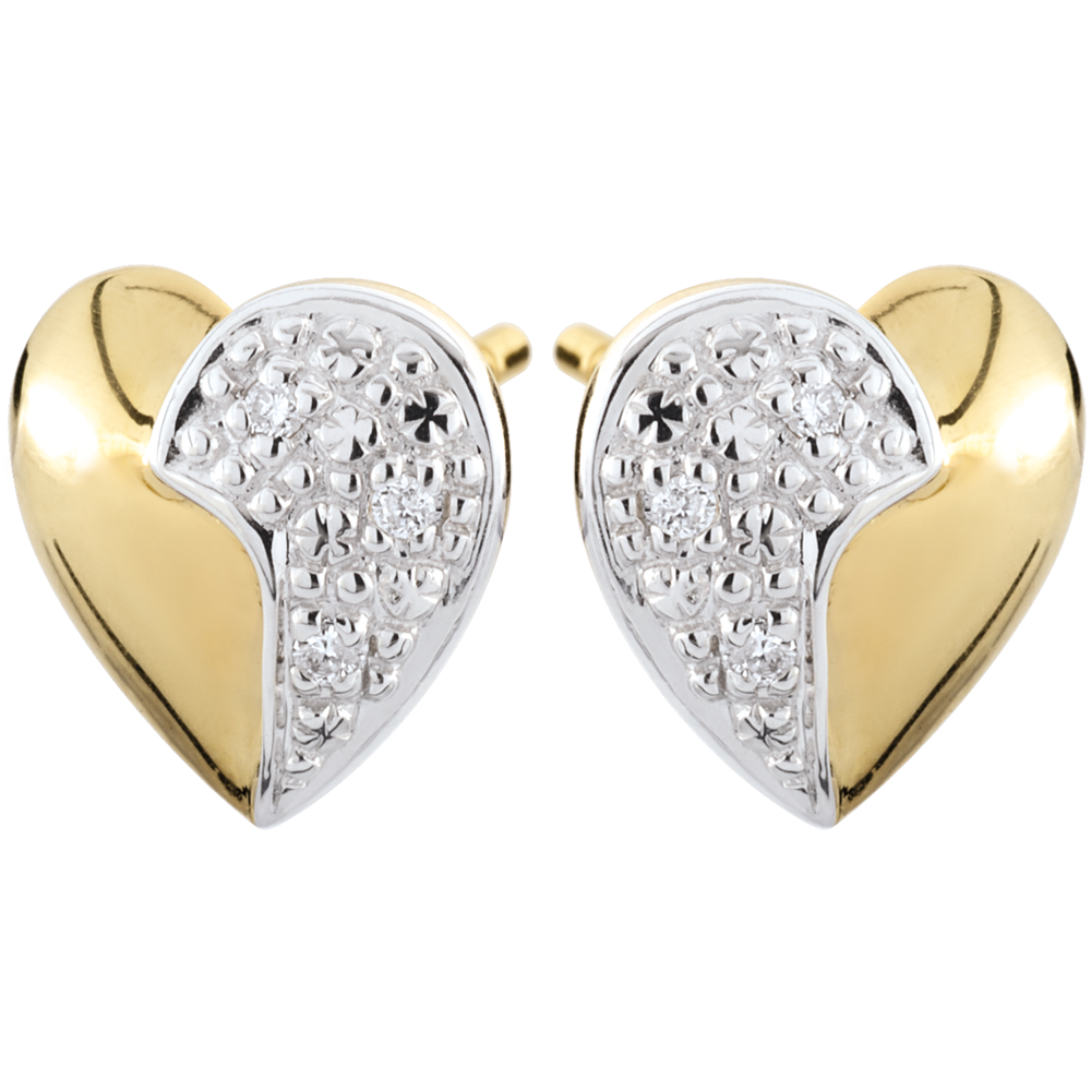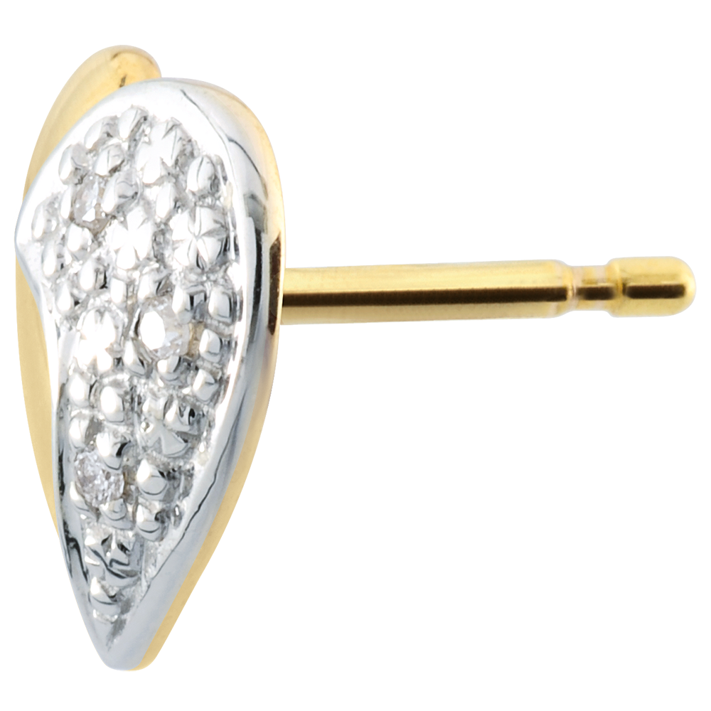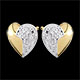 A pair of bi-colour stud earrings, two white gold diamond waves on yellow gold hearts.
