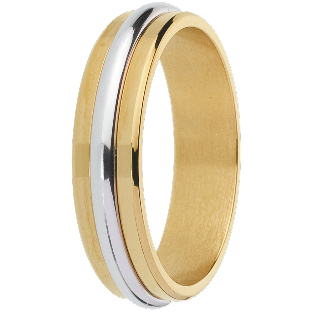 This yellow gold ring is lined through the middle with a white gold ring for a lasting impression.