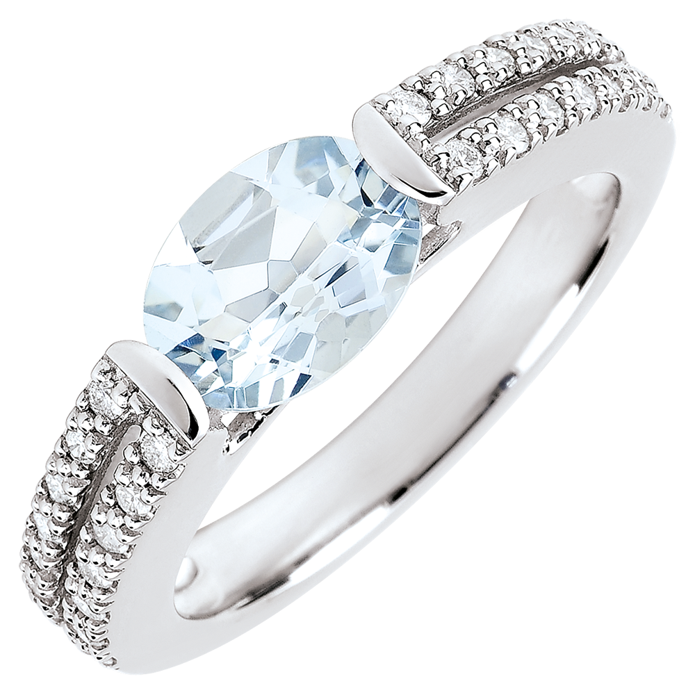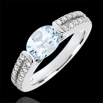 Victory Engagement Ring - 1.2 carat aquamarine and diamonds - white gold 18 carats