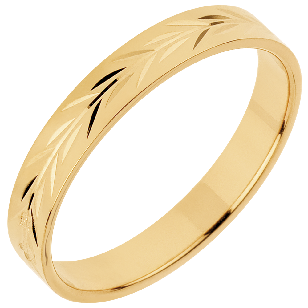 Freshness wedding ring - Palm engraved - yellow gold - 18 carat