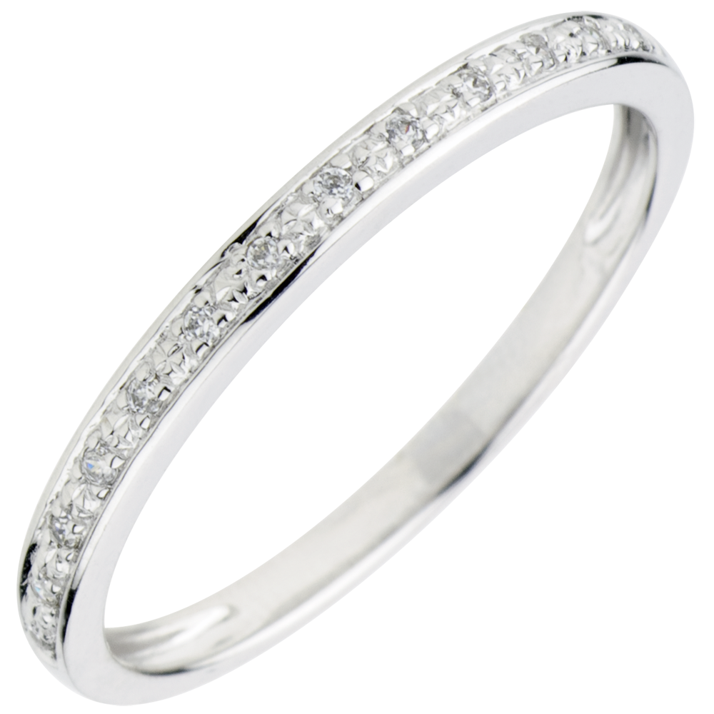 A white gold wedding ring set with elegant and timeless grains. This ring is the ideal to accompany an engagement ring or to wear on its own.