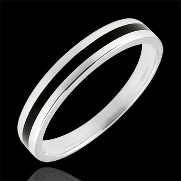 Wedding Ring gold Men - Clair Obscure - One line - white gold and black lacquer - 18 carat