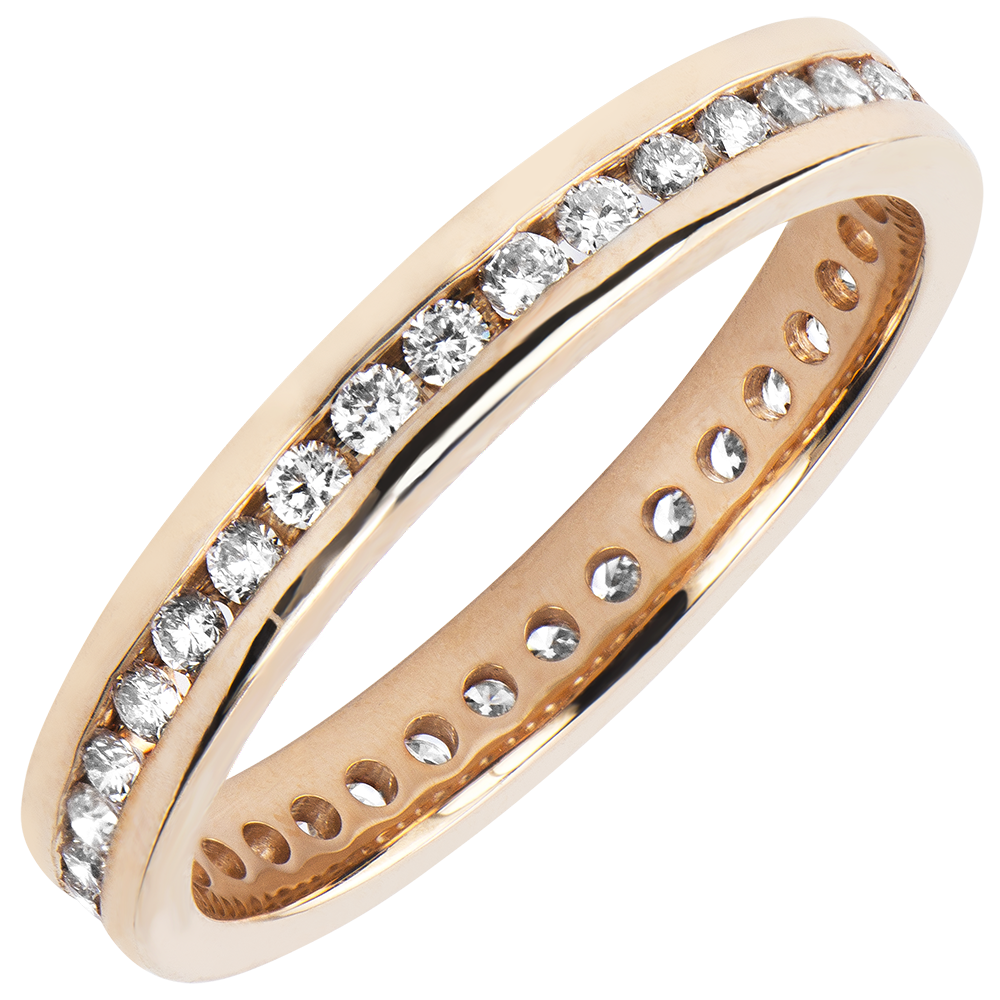 Wedding Ring Origin - Bed of Diamond - Complete round - pink gold 9 carats and diamonds